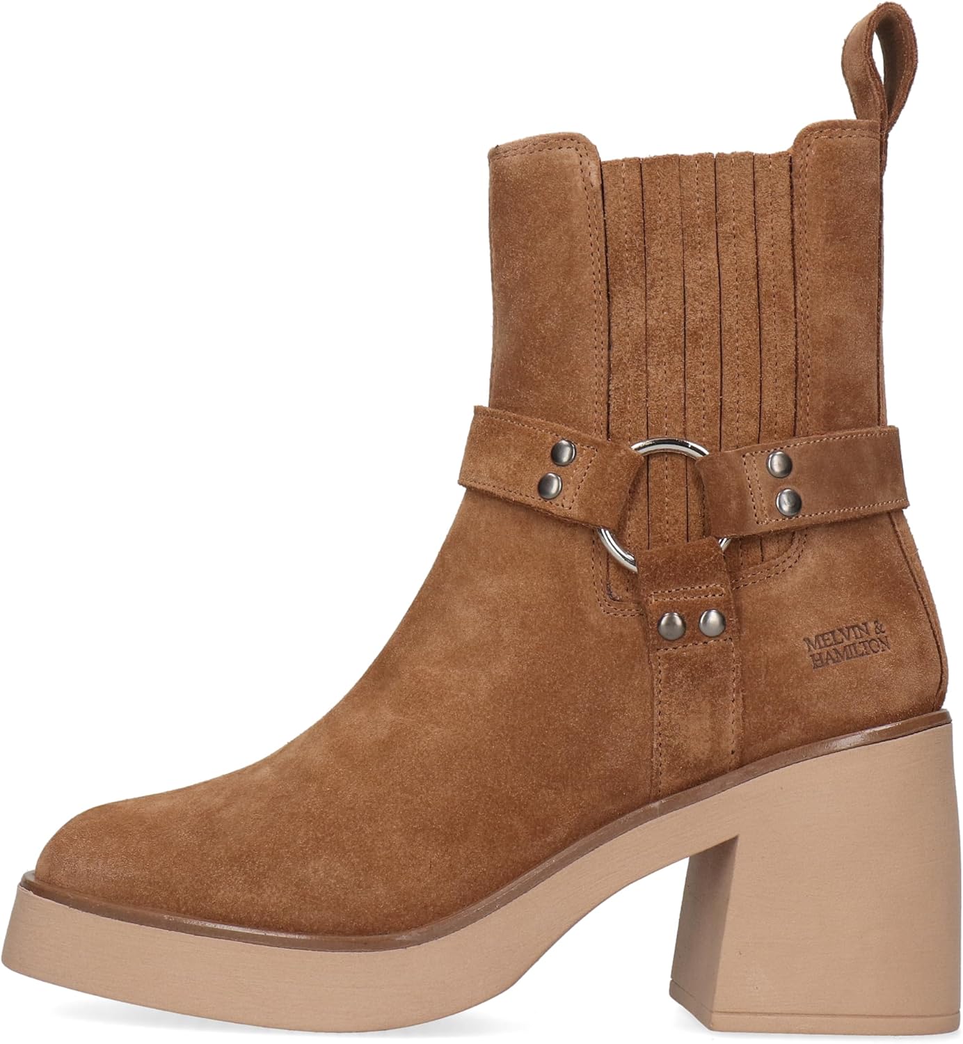 Gli stivali Melvin & Hamilton Paisley sono realizzati in pregiata pelle scamosciata di mucca, che dona un aspetto elegante e morbido. Il tacco a blocco di 5 cm offre stabilità e comfort, mentre la suola in gomma garantisce aderenza e durata. La punta rotonda completa il design, rendendo questi stivaletti versatili per diverse occasioni.